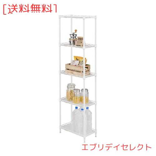 ドウシシャ ルミナス ラテ 隙間収納ラック 幅25cm 奥行45 5段 ホワイト 白 おしゃれで可愛い スリムスチールラック 落下防止シート付き