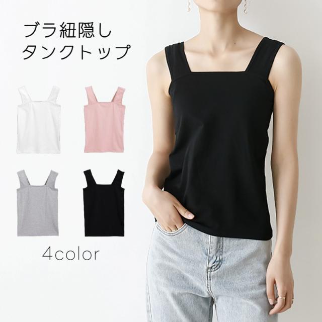 タンクトップ ブラ紐隠し トップス レディース スクエアネック ノースリーブ シンプル カジュアル おしゃれ かわいい 薄手 単