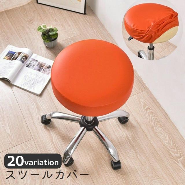 チェアカバー 丸椅子カバー 円形 丸型 ラウンド レザー調 無地 保護 汚れ防止 傷防止 模様替え 椅子 イス 装着簡単 シンプ