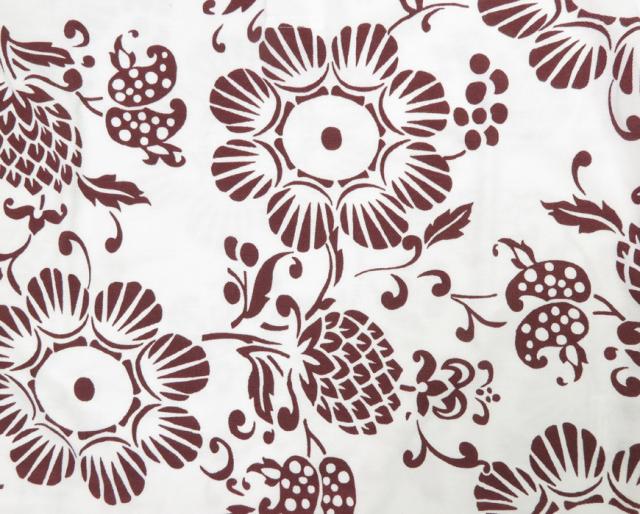 対して生地の表面にはコットン素材のみの層を作り、ヴィンテージ同様に抜染プリントで柄を染め抜くことで、クラシカルな外観と快適な着心地を両立させている。