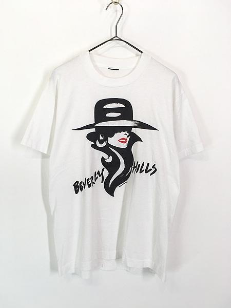 レディース 古着 80s 「BEVERLY HILLS」 マダム 貴婦人 赤リップ プリント Tシャツ L位 古着