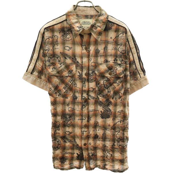 アヴィレックス チェック 半袖 デザイン シャツ L ブラウン系 AVIREX ミニタリー メンズ