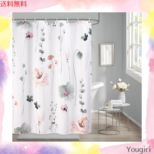 優れた品質 - 当社のシャワーカーテンは100%ポリエステル製でにおい無し、柔らかくて手触りよく、耐久性があり軽量な素材です。 重みのある裾が付いており、カーテンを所定の位置に保ち、吹き飛ばすのも防ぎ、フィット感がいいです。美しい花柄で、自然に近い気があります。