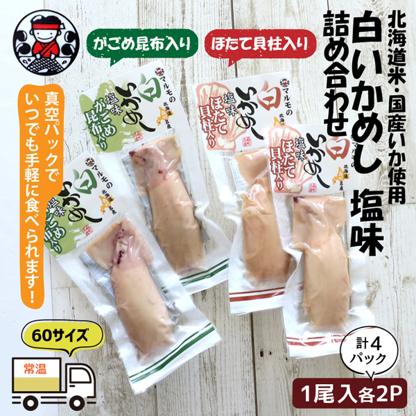 いかめし マルモの白いかめし 2種詰め合わせ 1尾入り×2P×2種 送料無料 北海道 森町 特産 函館名物 ほたて貝柱入り がごめ昆布入り イカ飯 イカめし いか飯 いか 函館 森町名産 贈り物 ギフト お取り寄せ 駅弁 北海道グルメ マルモ食品【nys_jo6】