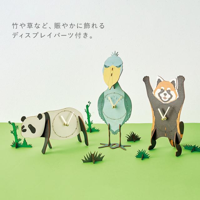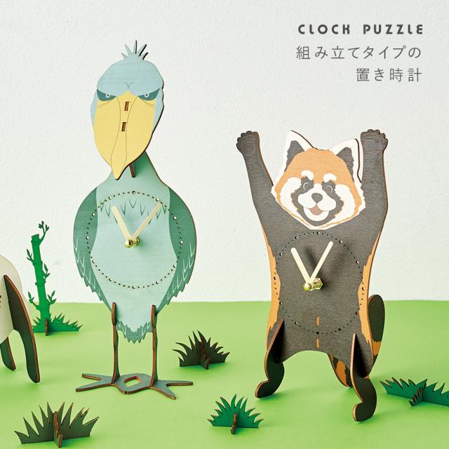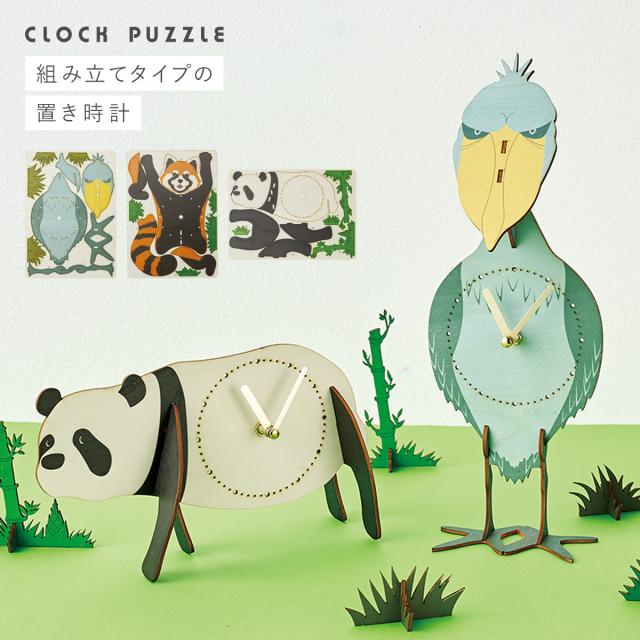 置き時計 立体パズル 木製 手作り 時計 キット 子供 工作 立体 パズル 動物 アニマル ユニーク 文房具 かわいい パンダ レッサーパンダ ハシビロコウ クロックパズル 動物