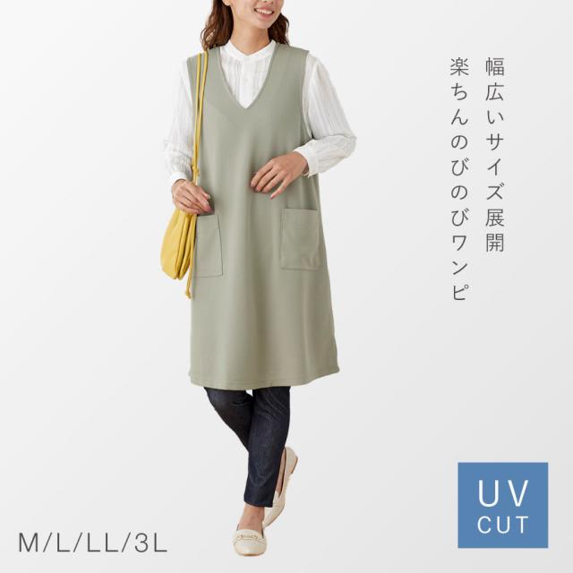 ジャンパースカート 夏 レディース きれいめ 大人 vネック Aライン uvカット 紫外線カット 体型カバー ラクゆるジャンスカワンピ M L LL 3L 大きいサイズ 大きめ ゆったり 50代 60代 70代 ミセス ファッション メール便対応