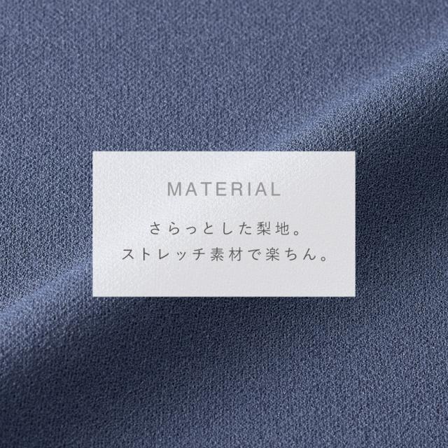 さらっとした梨地ストレッチ素材で身体のラインを拾いにくく、着心地も楽ちん。