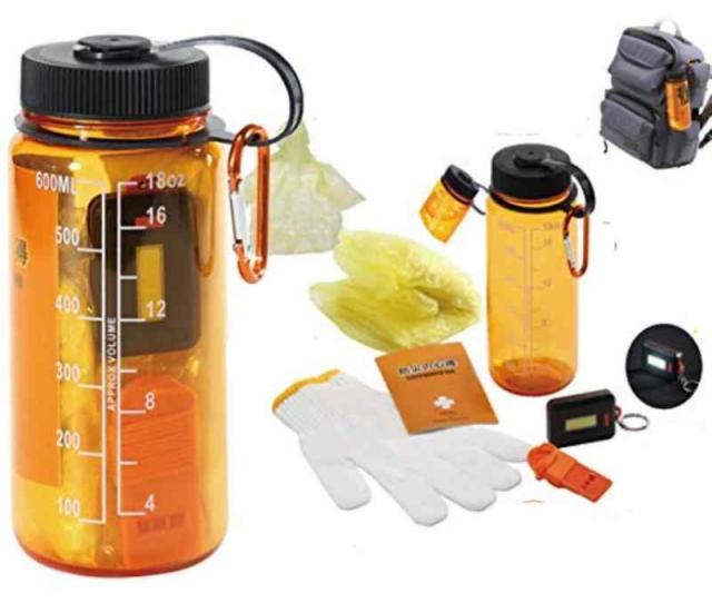 ウォーターボトルに役立つ防災グッズを詰め込んだコンパクト防災グッズ