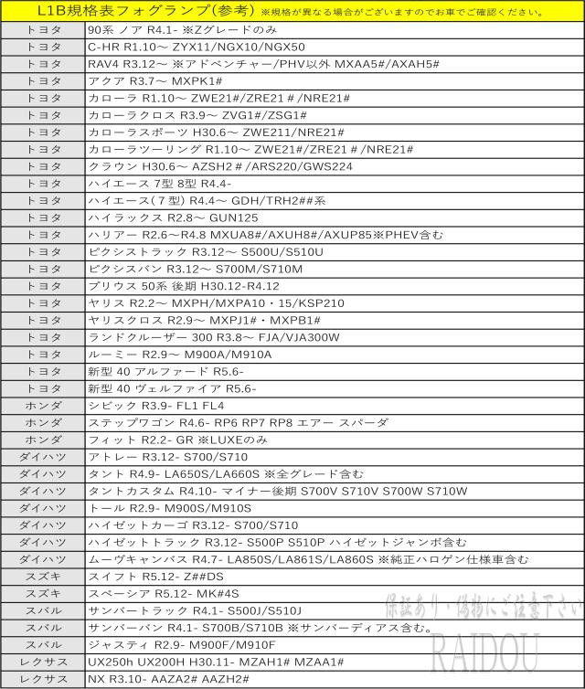 L1Bフォグランプは高発光率のCSPチップを搭載した、純正より安定性が強くなり、広い照射範囲を実現します。