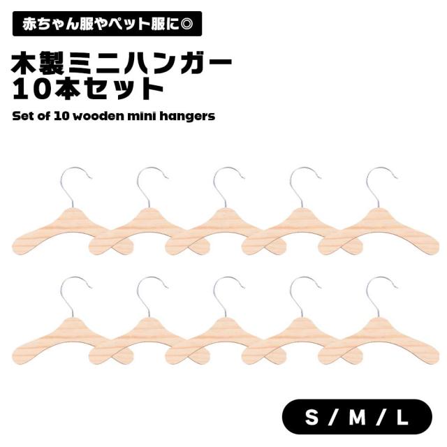 ミニハンガー 木製 10本セット ペット 赤ちゃん 人形 ディスプレイ お洒落 可愛い シンプル 薄型 軽量 犬 猫 ドール フィギュア 保管 展示 収納 かさばらない