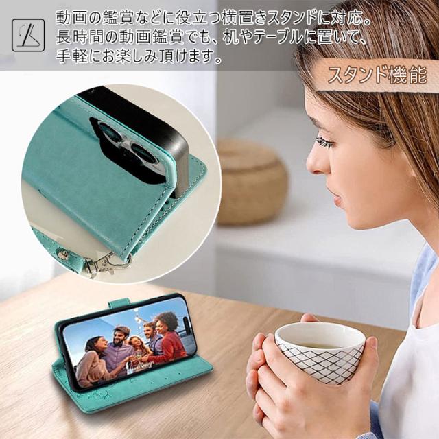 ●財布型ケースとして、名刺やお札などを入れるカードポケットがつき、日常生活に便利です。