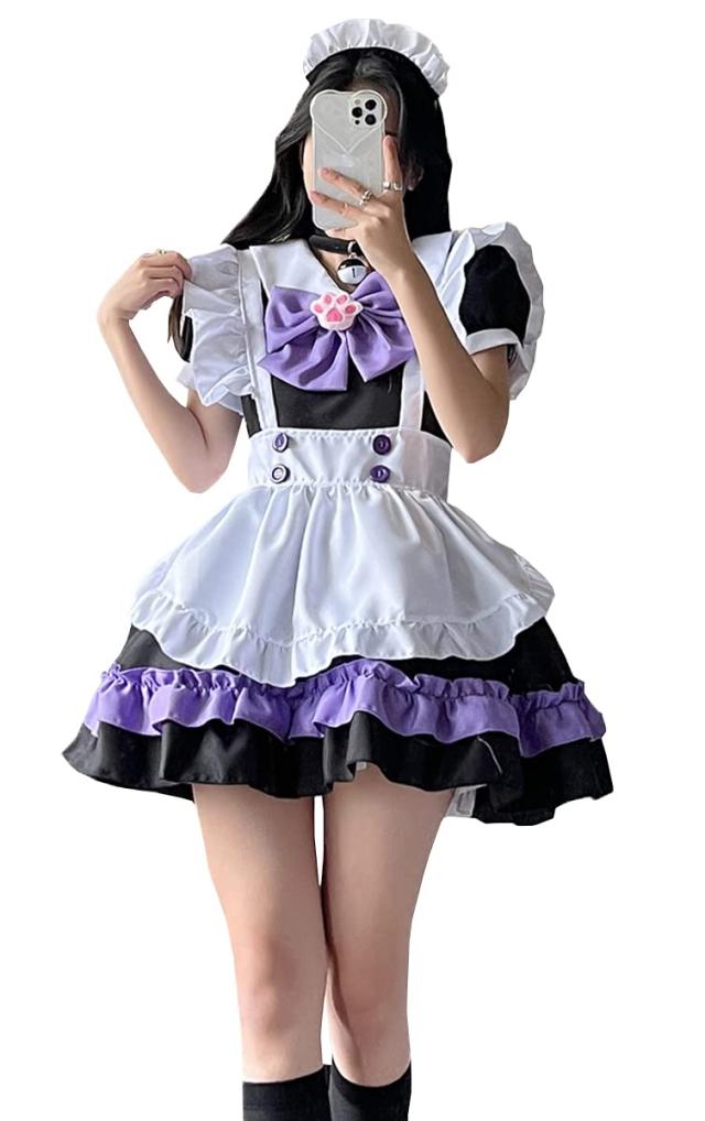 [FULINE] メイド服 コスプレ衣装 女装 萌え萌え かわいい 仮装 ゴスロリ ワンピース 大きいサイズ パープル 2XL