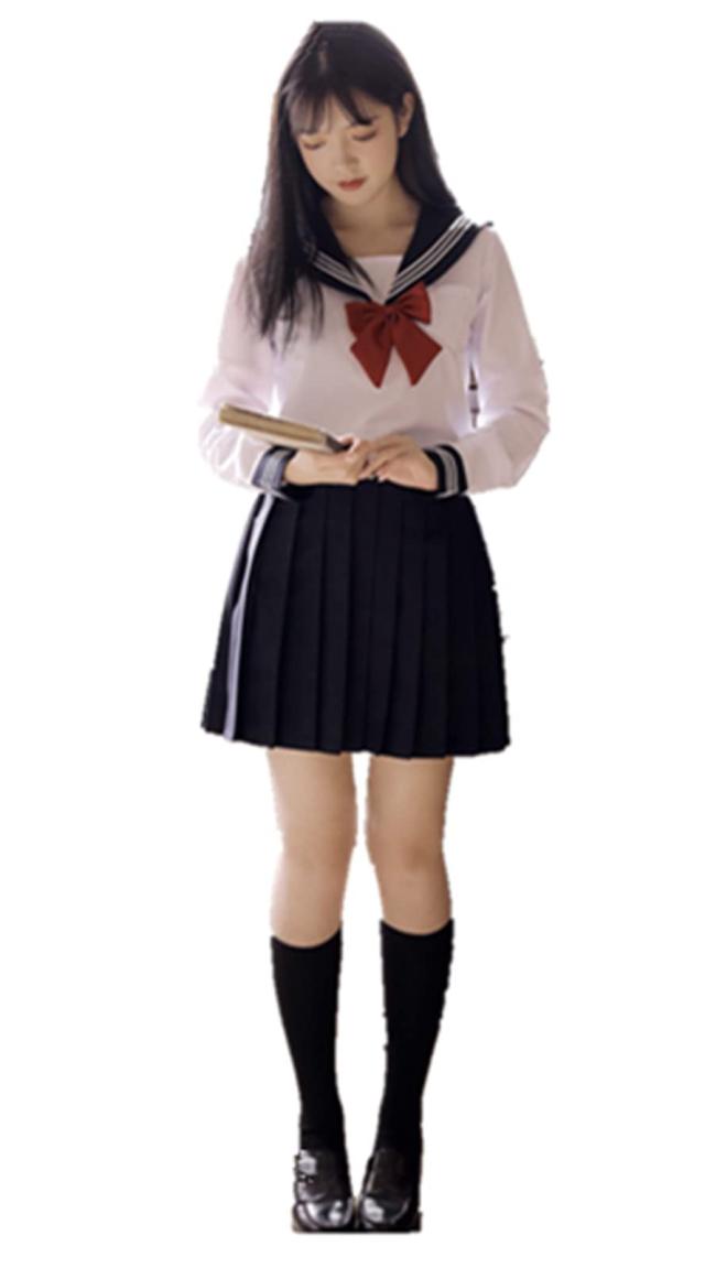 [Somnvs258] 白三本 女装対応 大きいサイズ セーラー服 JK 制服 3点セット メンズ 男性 長袖 ネクタイ ミニ スカート コスプレ 学園祭 文