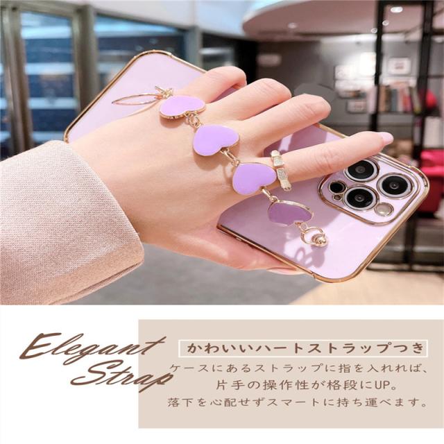 〇 ハートのハンドストラップ付きで、大画面のスマホでも操作性アップ。