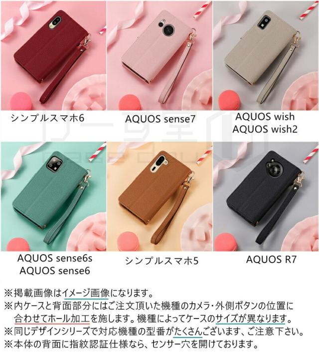 AQUOS R10 wish5 Wish4 R9 Wish3 R8 Pro Sense9 8 7 plus 携帯ケース ショルダー 手帳型 コインケース付き アクオス センス 8 7 6s 9 スマホケース ショルダー AQUOS Wish2 手帳型ケース スマホショルダー ハンドストラップ かわいい ハート柄 おしゃれ 大人女子 RFID機能