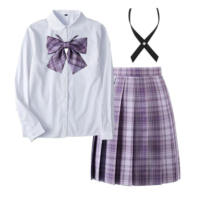 [SYRHSYB] コスプレ 制服 セット jkスカート 丈48cm 4点セット 女子学生服 上下セット 半袖 丸襟 長袖 白いシャツ+蝶結び+クロスタイ