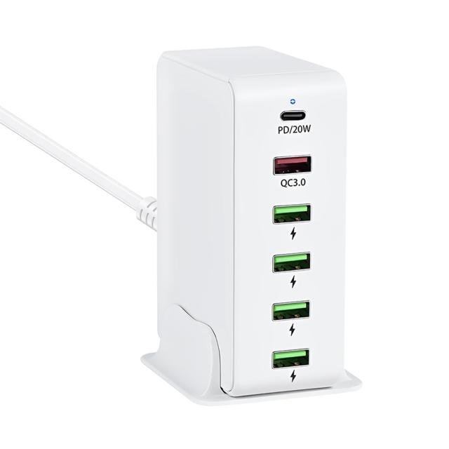 ◆商品名:USB 充電器 合計65W PD 急速充電器 6ポート【PD20W&QC3.0/6台同時充電/1.2Mケーブル&スタンド付】USB-C*1&USB-A*5 携帯電話 充電器 acア