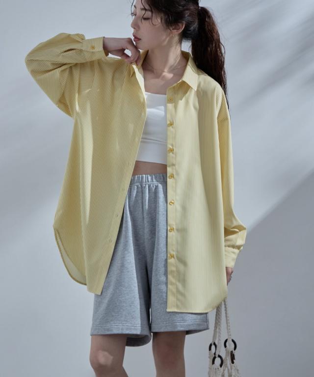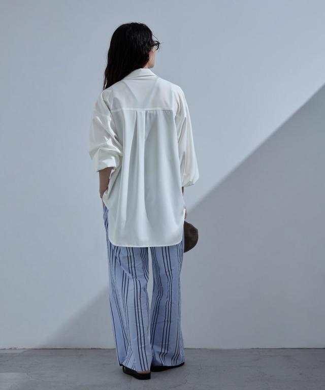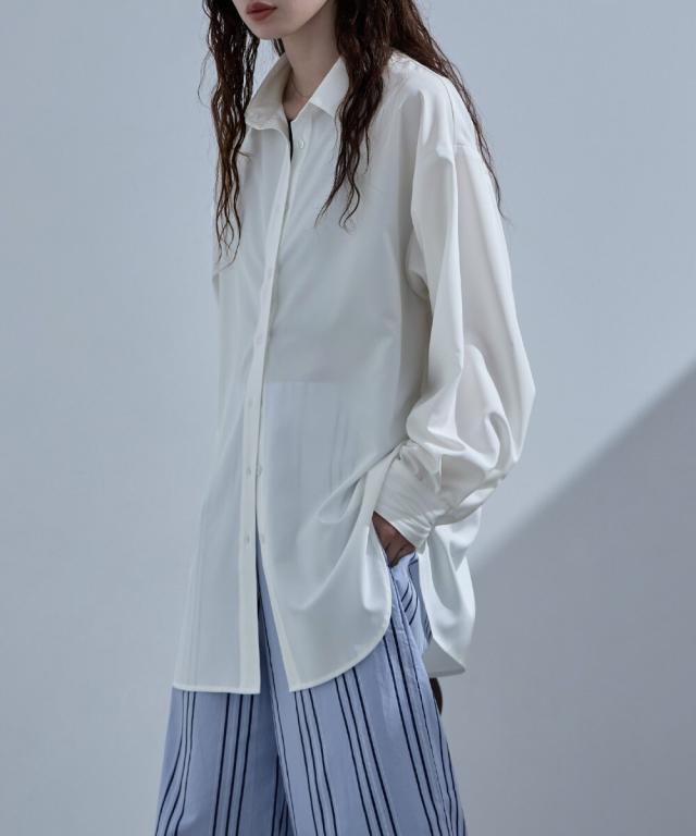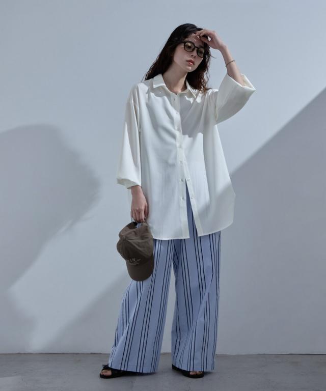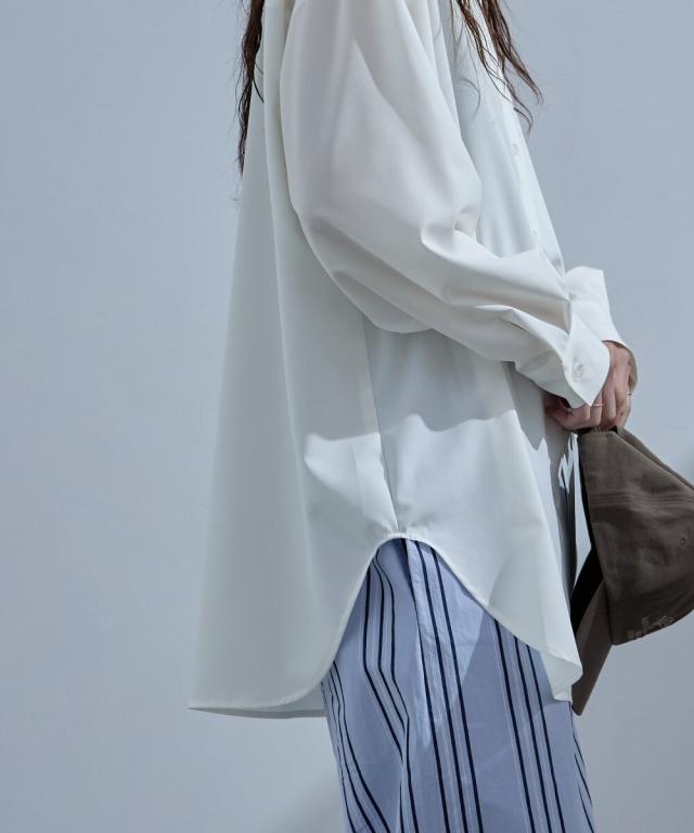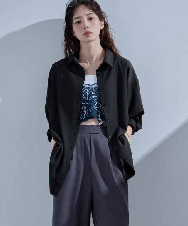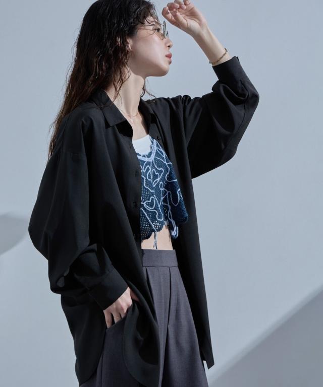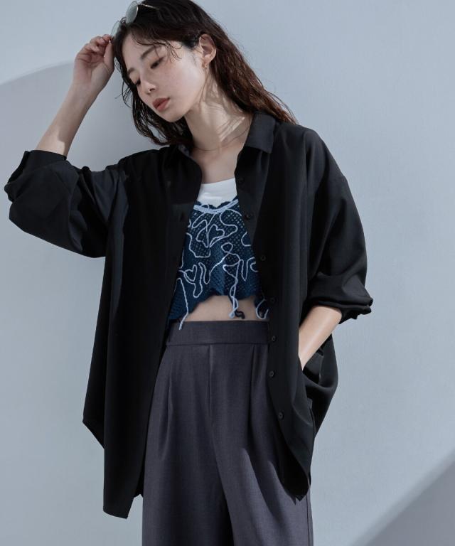 シャープな見た目なのにゆるいシャツは羽織りアイテムとしてもこれからの季節に欠かせないアイテムです。