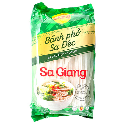 平たいタイプのライスヌードルです。鶏ガラや牛だしのスープに合わせたり、炒め物などにおすすめです。