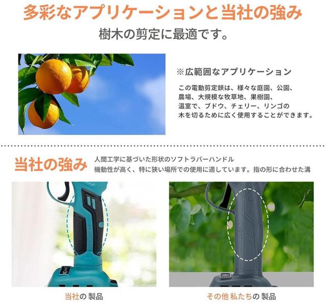 幅広い用途 :庭園、公園、農場、大規模な牧草地、果樹園、温室に幅広く使用でき、ブドウ、桜、リンゴの木などを切断できます。