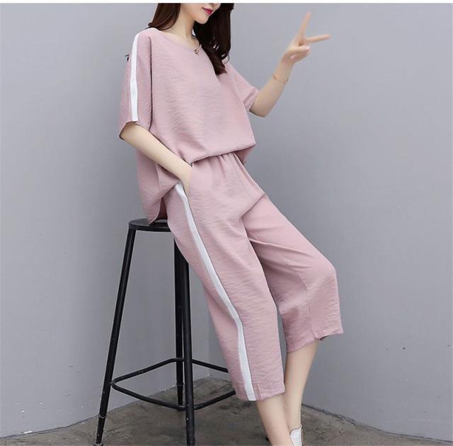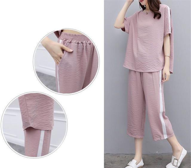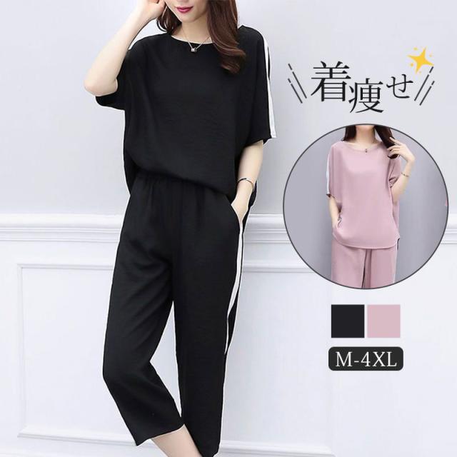 セットアップ レディース Tシャツ+パンツ 上下セット パンツスーツ ロング パンツ 2点セット 半袖 大人 夏 きれいめ カジュアル 大きいサイズ