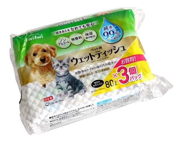 ペット用ウェットティッシュ Furi furi 18×15cm 80枚×3個入