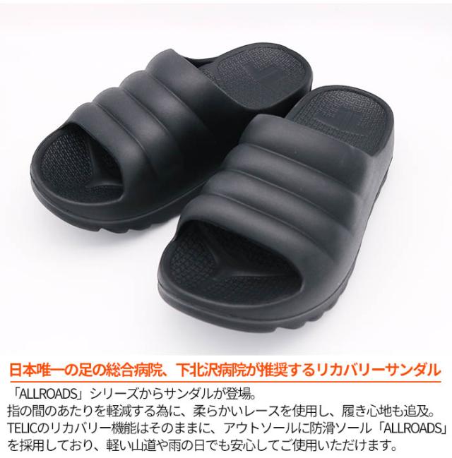 TELIC テリック リカバリーサンダル スポーツサンダル サンダル スリッパ マッサージ クッション 健康サンダル 衝撃吸収 アメカジ ストリート スポーティ スポーツ メンズ レディース ユニセックス きれいめ カジュアル ブランド シンプル 男性 女性 大人 丈夫 頑丈 タフ ブラック 春 夏 秋 冬