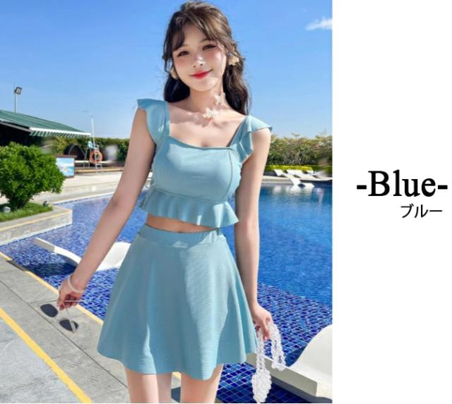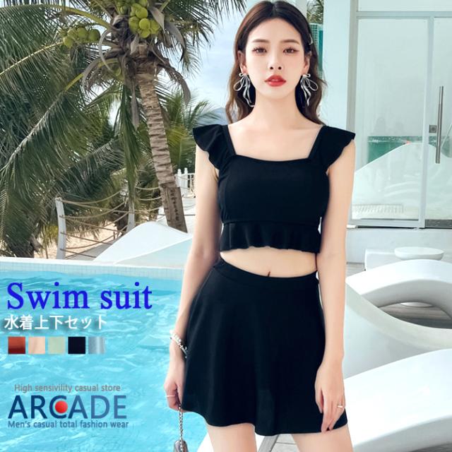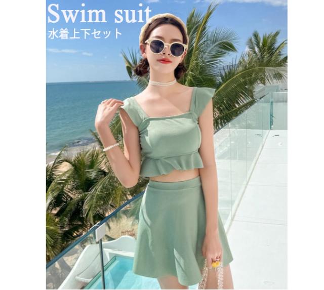 水着上下セット レディース 新作 ビスチェ フリル ハイウエストスカート タンキニ ビキ二 2点セット