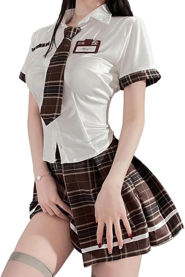 セット内容: トップス+ネクタイ+名札+スカート(4点セット)。