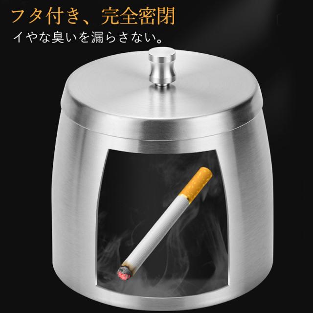 灰皿 車 ステンレス フタ付き 車載 車内 アッシュトレイ 大容量 ポータブル灰皿 お洒落 高級 屋内 屋外 タバコ 防臭 シルバ