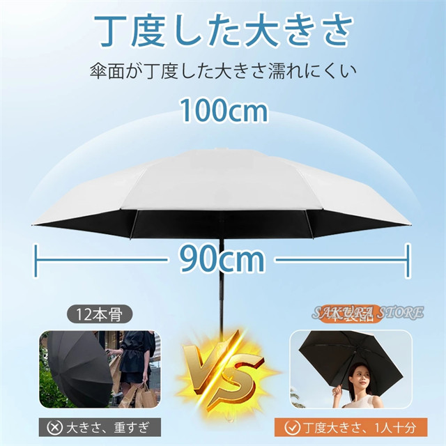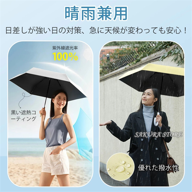 折りたたみ傘 完全遮光 遮熱 日傘 超軽量 UPF50+ UVカット率 99.9% コンパクト 14cm収納 6本骨 直径90cm 紫外線遮断 高撥水梅雨対策 晴雨兼用 折り畳み 雨傘 メンズ レディース おしゃれ かわいい 母の日 父の日 2色選択