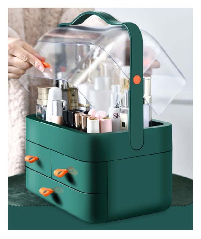 | たっぷり収納大容量!取っ手付きコスメ収納ボックス メイクボックスは2つの部分で構成され、上段には透明なボックスがあり、化粧水や乳液など立てて収納可能。 下段には3つの引き出しがあるのでコスメを分類して収納できます。 蓋と引き出しは埃と水を外に隔絶でき、化粧品を清潔に保ち。透明なので中身が一目瞭然、蓋を前後ろから開け、大きい物も簡単に取り出せます。 お持ち便利な一体式は手持ち運びのデザインで、どこにも持ち運びやすいです。 お部屋の雰囲気を邪魔しないシンプルなデザイン。寝室、化粧台、バスルームなど、さまざまな場所でご利用いただけます。 | |