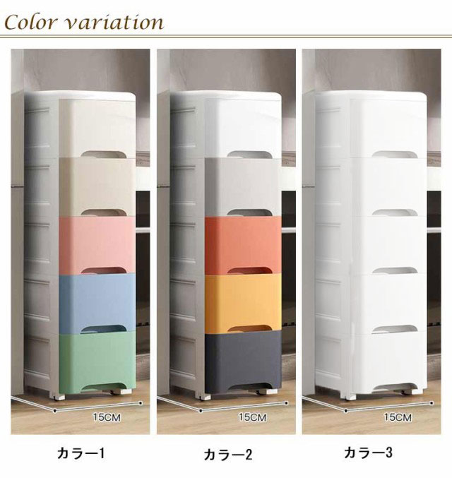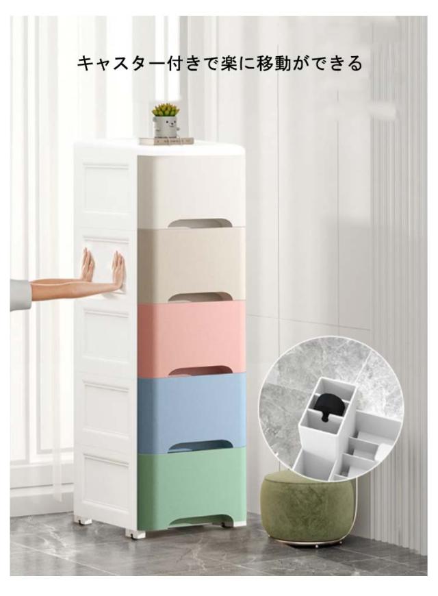 バスルーム 収納 収納ワゴン 3段 引き出し すき間ストッカーすき間収納 4段 移動可能 幅14cm 洗濯機横 4段 隙間収納 小物 洗面所 5段