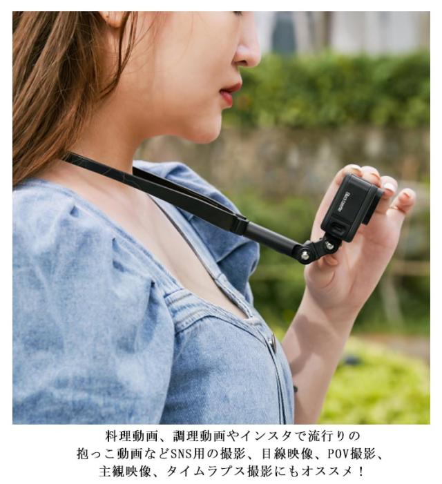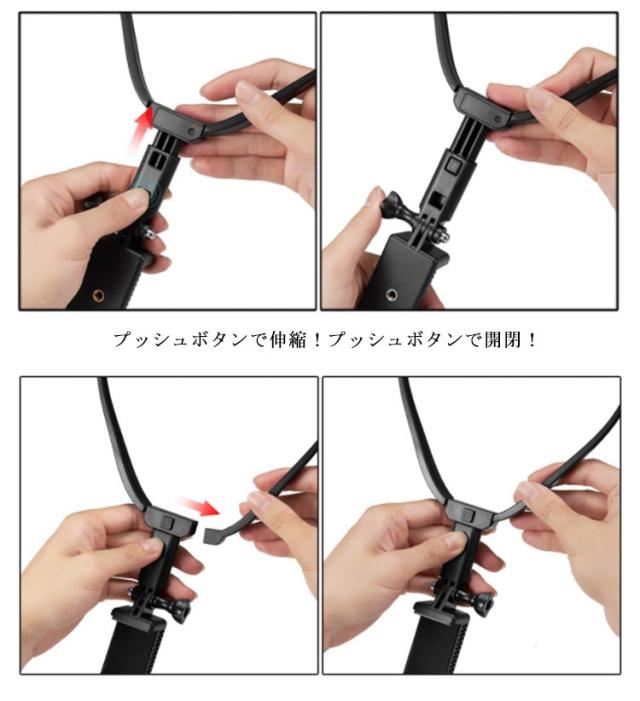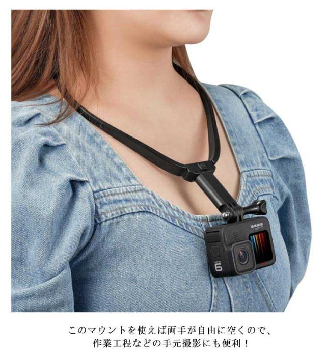 | スマホや携帯を首からネックレスのように下げることで撮影が可能になるハンズフリーマウント! このマウントを使えば両手が自由に空くので、作業工程などの手元撮影にも便利! 料理動画、調理動画やインスタで流行りの抱っこ動画などSNS用の撮影、目線映像、POV撮影、主観映像、タイムラプス撮影にもオススメ! 付属のスマホマウントを外せば GoPro ゴープロも取り付けられます。 プッシュボタンで伸縮!プッシュボタンで開閉! | |