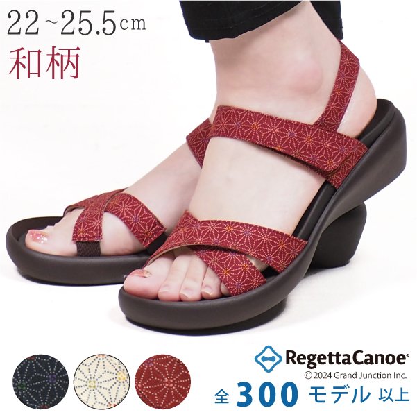 商品名:Regetta Canoe/リゲッタカヌー フラットウェッジ 和柄サンダル(麻の葉柄)