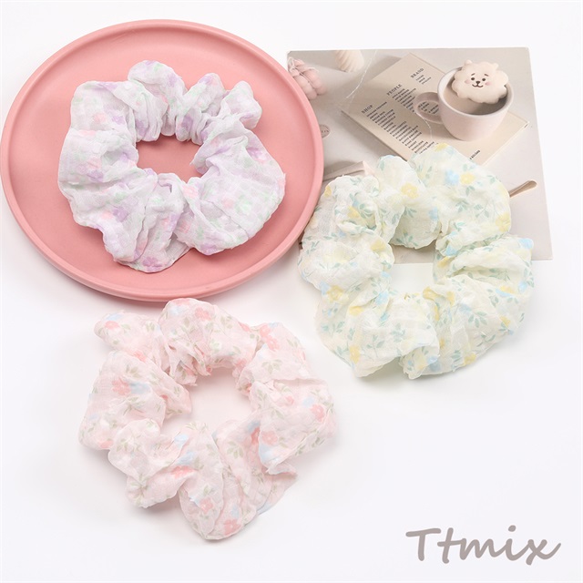 シュシュ フラワー柄シュシュ フラワーモチーフシュシュ 花柄プリントシュシュ ヘアアクセサリー