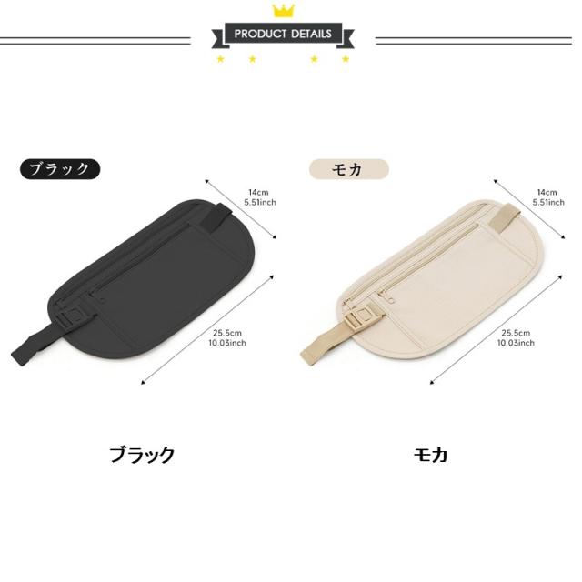 【隠せる薄型】防犯に特化した隠して装着できる超薄型タイプです。薄型のウエストポーチは服の下に装着しても、周りの人から見えず安心です。無防備にバッグ、ズボンのポケットに貴重品を入れず、隠されます。