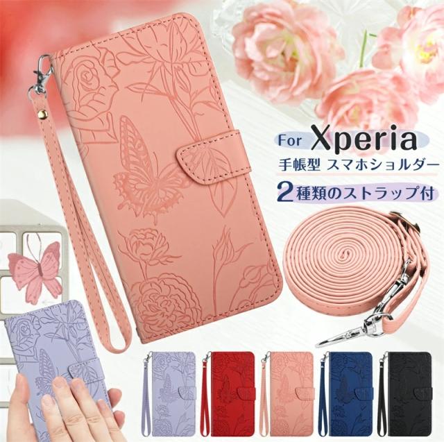 ショルダー タイプ スマホケース Xperia1VII 10VI 1 IV カバー ケース エクスペリア 5 1 10 V IV ACE III 手帳型ケース スマホショルダー Xperia Ace III ケース Xperia 10 III lite カバー 手帳型 耐衝撃 花柄 蝶柄 カード入れ ショルダー付き 携帯ショルダー 肩掛け 大人