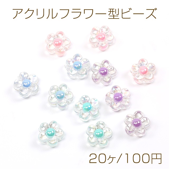 アクリルフラワー型ビーズ オーロラビーズ フラワーモチーフアクリルビーズ 五弁花 通し穴あり 12mm