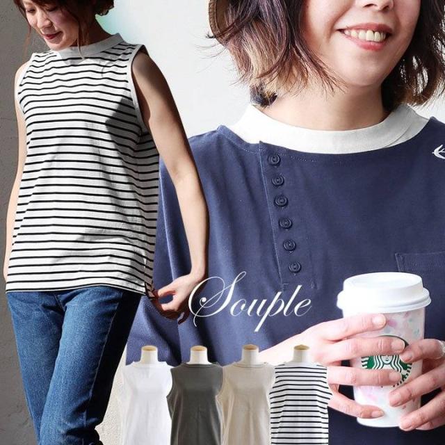 【メール便25】 【ネコポス発送】重ね着 タンクトップ レディース 着ぶくれない 胸が見えない 薄手 吸水 綿 しっかり 丈夫 コットン 伸びる 軽やか モックネック ワイド 胸元 ブラ紐 お尻 カバー パティ Souple スプル
