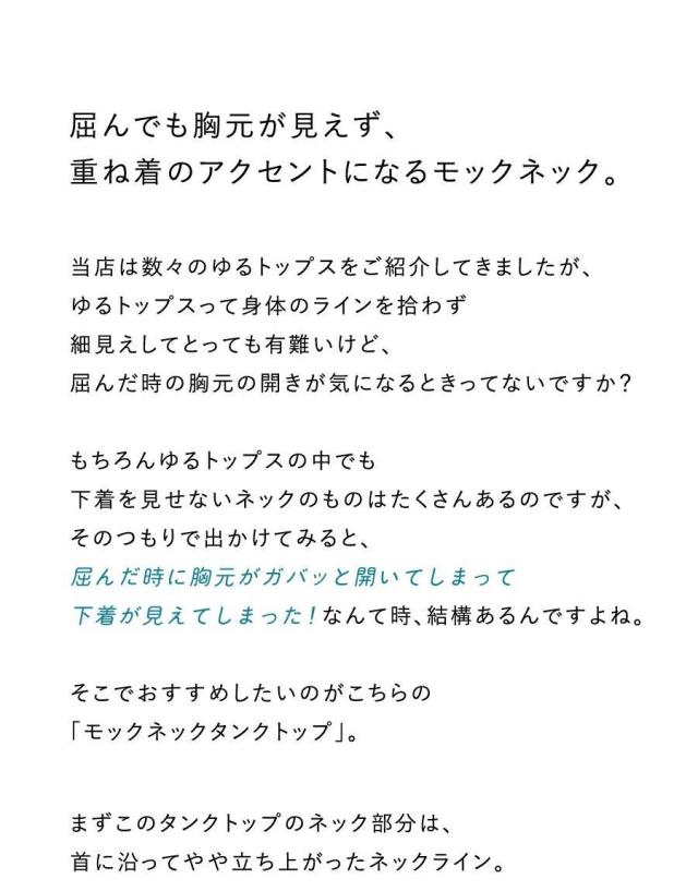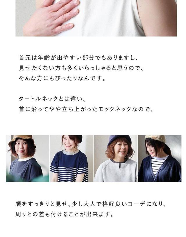 ・屈んでも胸元が見えず、重ね着のアクセントになるモックネック。