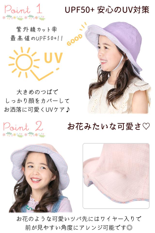 商品カテゴリ : 子ども 女の子 キッズ 子供 帽子 ハット UV チューリップハット 幼稚園 小学生 90cm 100cm 110cm 120cm 130cm 140cm 可愛い お洒落 パステル