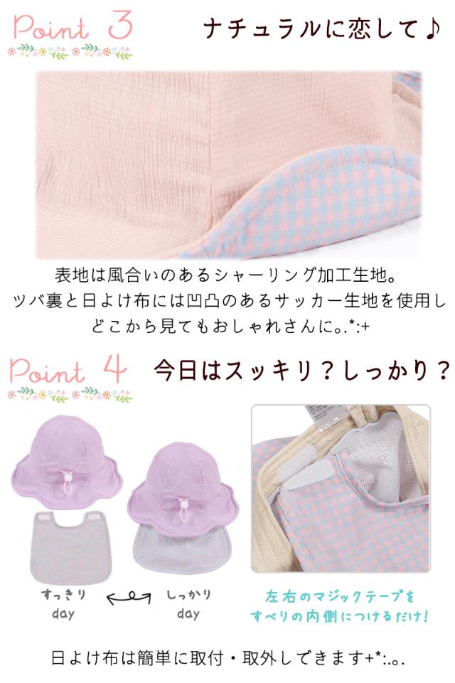 焼けやすい首の後をカバーする日よけ布つき!