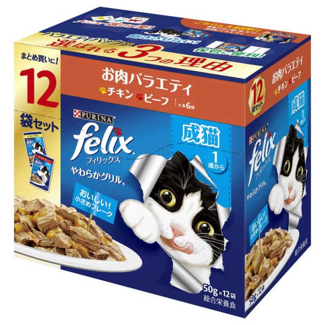 ネスレ日本 felix(フィリックス)やわらかグリル 成猫 お肉バラエティ 50g×12袋入