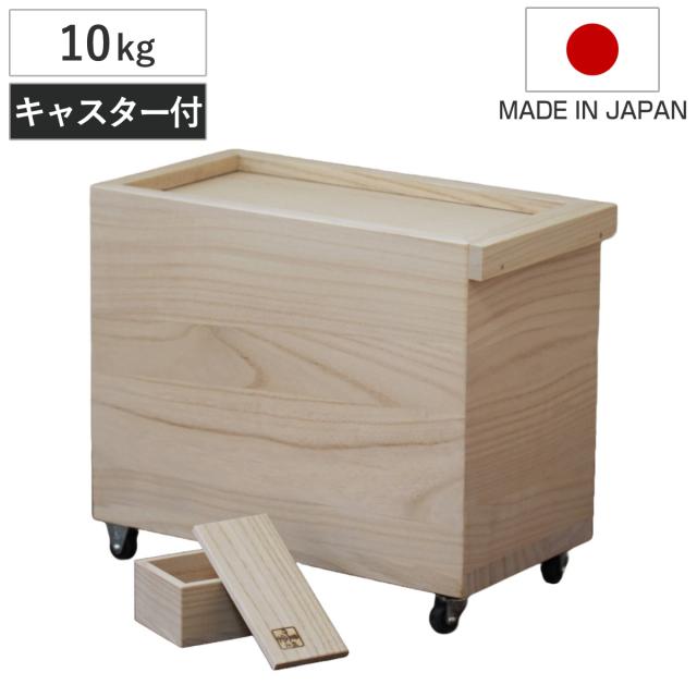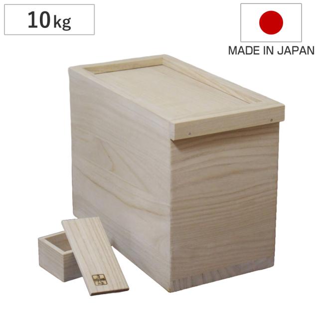 米びつ 10kg 桐の米びつ 無地 スライド型 一合升 すり切り棒付き ( 密閉 日本製 米櫃 こめびつ おしゃれ 調湿 防虫 桐 軽量 10キロ 和風 桐製米びつ お米 収納 保存 升付き 米びつ10キロ 米びつ おしゃれ)