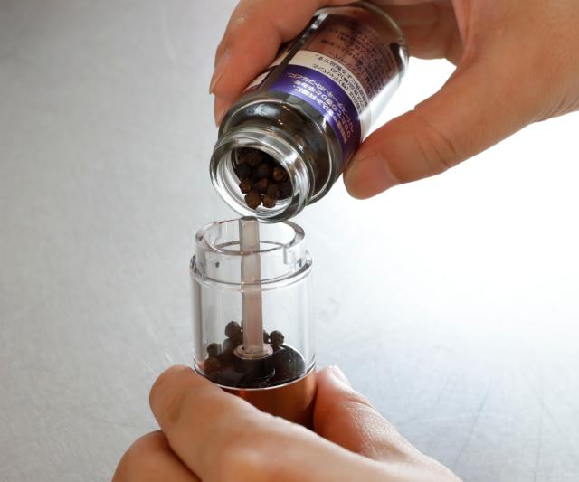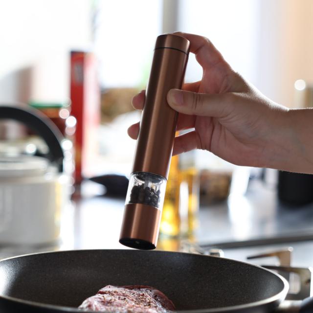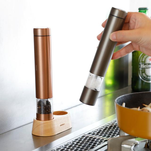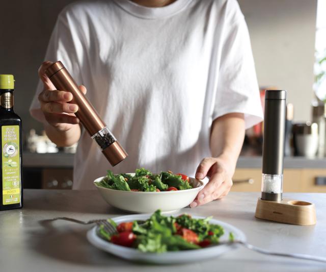 電動式なので、調理中も手を休めることなく、さっと片手で塩・胡椒などの味付けが完了します。挽きたての新鮮な香りがいつものお料理をグレードアップすること間違いなしです。