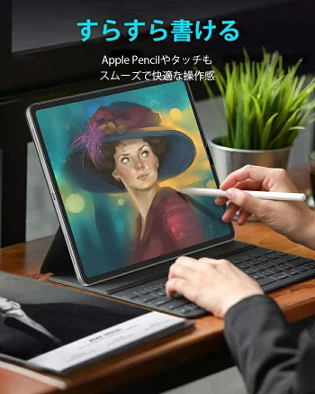 本製品は、液晶画面の端までピッタリとフィットして、iPadを安全に保護します。 しかも、フィルムの厚みは0.1mmという驚異的な薄さ。iPadのフォルムを損なうことなく、美しい仕上がりをキープします。 さらに、装着後の操作感も抜群です。手に馴染み、タッチ感度もそのまま。ストレスなくiPadを使えるのは嬉しいです。 薄くても耐久性に優れた素材なのもポイントです。 機能性とデザイン性を兼ね備えた製品です。 ぜひ、ご検討ください。 |