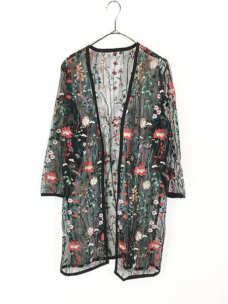 レディース 古着 カラフル 花 フラワー 総刺しゅう シースルー シアー ガウン S位 古着