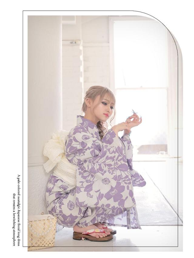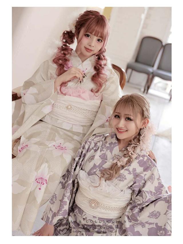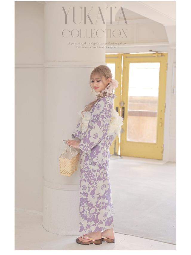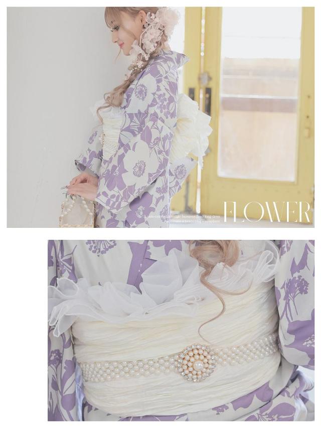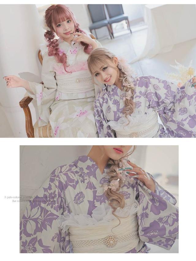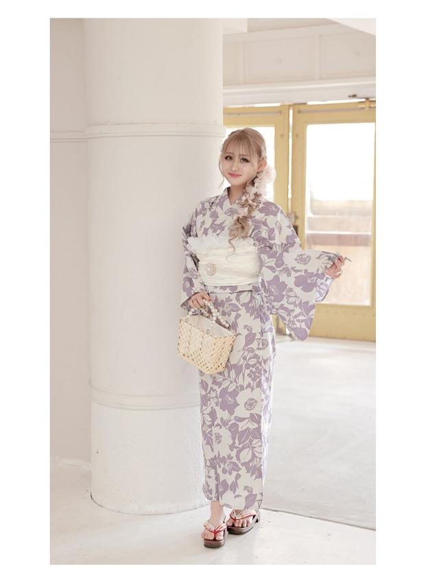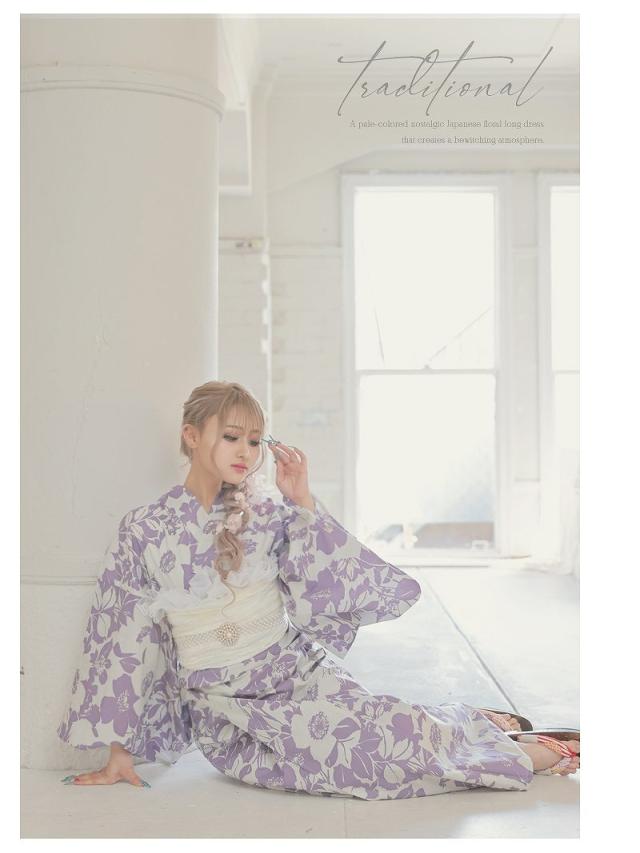 ☆グレーとパープルの配色がおしゃれなギャル浴衣は全体に描かれたフラワー柄がおしゃれなキャバ浴衣。