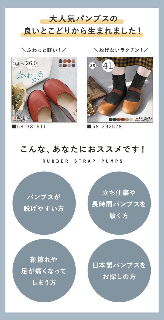 ゴム底ver 大人気ぺたんこパンプスのゴムストラップタイプ! 1.5cmのローヒールで疲れにくい。通勤・通学から旅行、小さなお子様のいるお母さんにもおすすめ! |